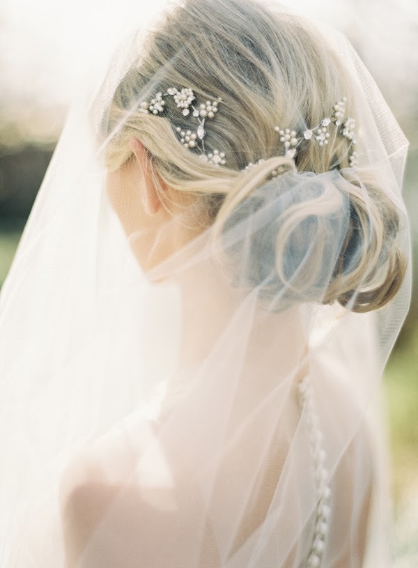 This is another chignon, this time with pearl accessories and and a flowing veil. You really can't go wrong with a beautiful bun! This one is loosely curls then softly placed into a bun to create a bit of movement.